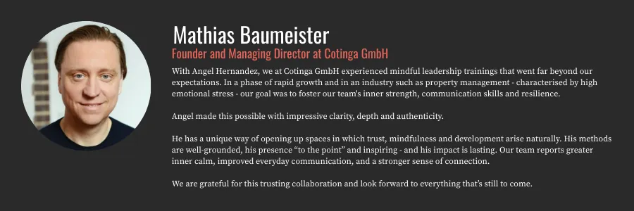 10 years of mindfulness-based leadership development and organisational transformation. Emotional intelligence, psychological safety, and team resilience — working with more than 40,000 professionals across leading industries.